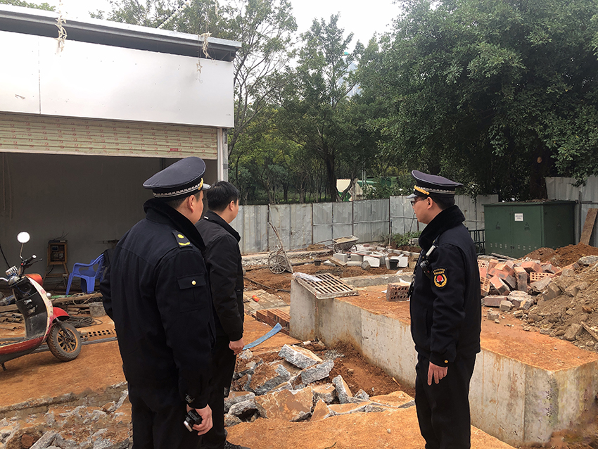 接報后,執(zhí)法人員前往學(xué)院路延長線對投訴進行處置。在現(xiàn)場,執(zhí)法人員看到工地里施工人員正在挖土砌墻,切割石材,現(xiàn)場灰塵滾滾,隨風(fēng)四散。執(zhí)法人員對施工人員進行了嚴肅的批評,工地方接受了意見,立即進行整改,安排工人灑水降塵。