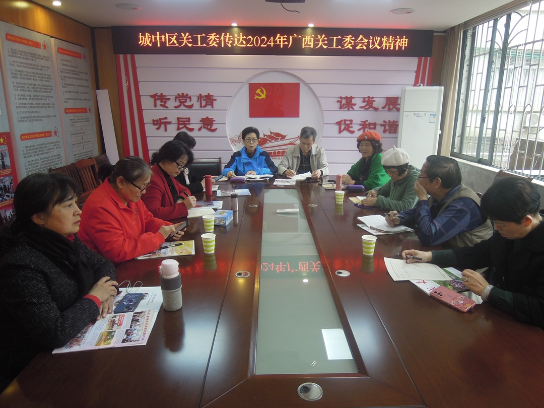 (區(qū)關(guān)工委辦訊?通訊員程中)3月13日,城中區(qū)關(guān)工委召開會議傳達2024年廣西關(guān)工委工作會議精神,會上明確今年工作目標:圍繞區(qū)委、區(qū)政府的中心工作要求,把握好新時代關(guān)心下一代工作的特點,落實立德樹人的根本任務,牢記囑托,創(chuàng)新求變,發(fā)揮各級關(guān)工組織和“五老”作用,促進城中區(qū)關(guān)心下一代工作高質(zhì)量發(fā)展。