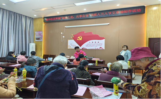 為了慶祝國際婦女節,同時提高殘疾人的創造力和自信心,3月6日下午,桂中社區在社區活動中心開展"創意之花,共享自信"殘疾人三八婦女節艾草錘制作活動。此次活動為社區殘疾人提供了一個展示自己才藝的平臺,同時通過手工制作的方式促進社區居民之間的交流與合作。
