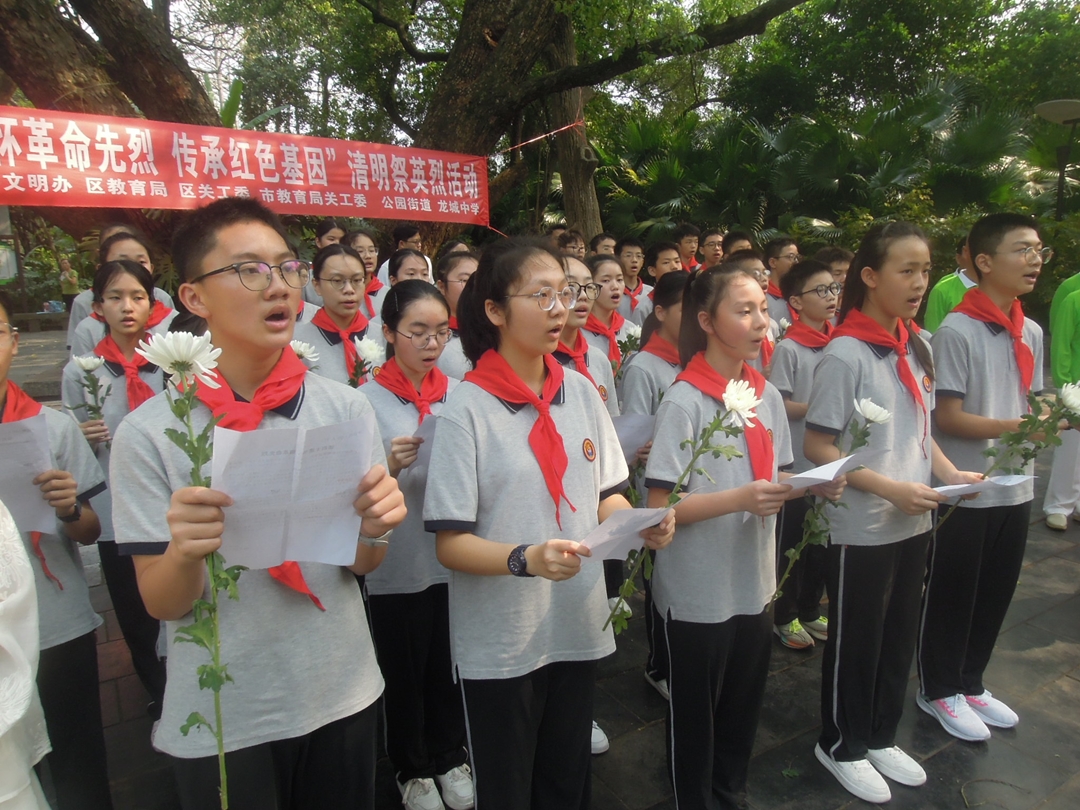 龍城中學50多名學生深情朗誦龍城中學校友賀智華烈士參加革命斗爭寫給姐姐遺書,重溫烈士誓言:寧愿犧牲生命,不愿犧牲真理。同學們唱起“少年先鋒隊隊歌”,表達青少年愛祖國、愛人民、熱愛中華民族的信念,樹立遠大理想,立志為實現中國夢而努力奮斗。
