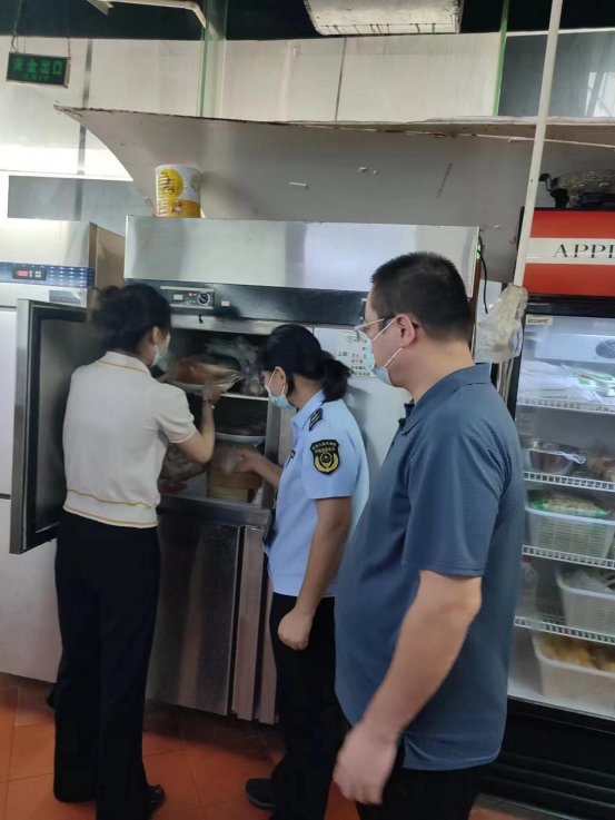 檢查人員針對后廚環境衛生、索證索票、食品及食品原料貯存、加工制作過程、食品留樣、餐飲具清洗消毒、從業人員健康管理、“日管控、周排查、月調度”落實情況、反餐飲浪費等事項逐一進行檢查。對于現場檢查出現的問題,檢查人員給予整改建議,并要求餐飲單位定時整改到位。