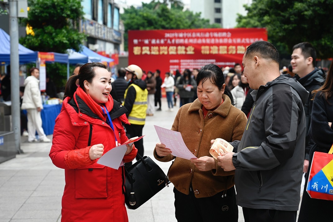 ????本次活動共有62家優質企業參會,提供涉及汽修、物業、電商等領域的3475個就業崗位,重點面向農村勞動力、失業人員高校畢業生、退役軍人等群體。當天,企業HR熱情地向求職者介紹企業情況、崗位要求和福利待遇;求職者們手持簡歷,滿懷期待地穿梭于各個招聘攤位之間,認真聆聽、仔細咨詢相關細節問題,328名求職者與企業現場達成了初步的就業意向。“春節過后,我們企業急需補充各類崗位人才,今天雖然很冷,但是現場很熱鬧!希望大家都能找到自己心儀的崗位,企業也能找到合適的人才!”一家參會的企業HR感慨道。?