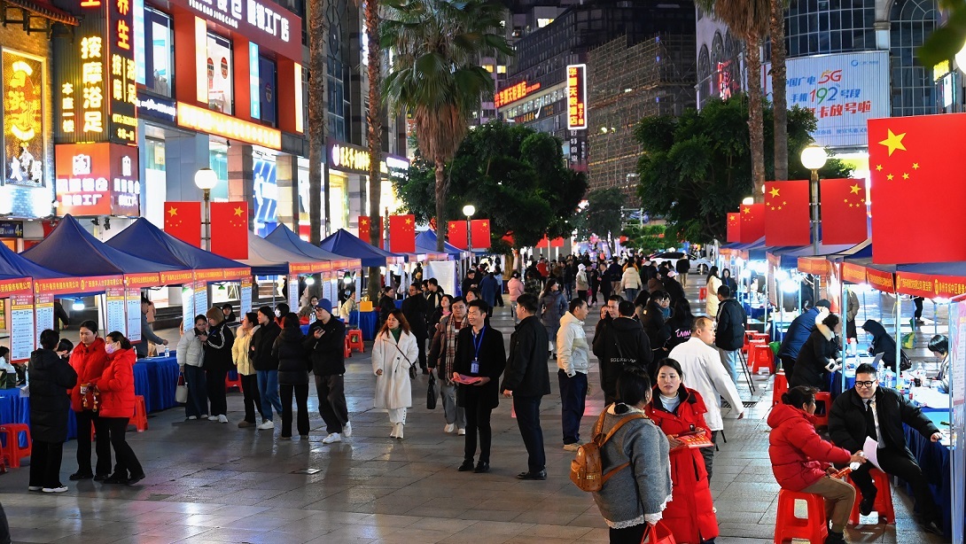 ?????3月7日,2025年柳州市城中區春風行動專場招聘會暨“‘城’就未來”人才招聘系列活動及促進各民族群眾互嵌式發展活動在五星步行街成功舉辦,吸引1100名求職者前來應聘。