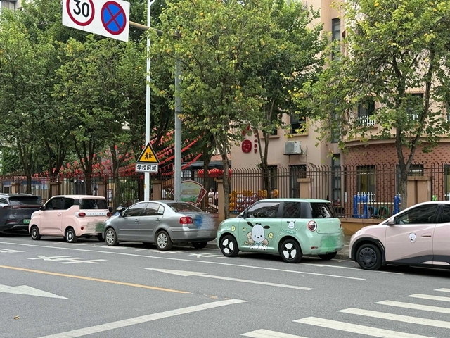 9號(hào)早上7點(diǎn)半,記者來(lái)到美靜路紫荊花幼兒園路段,看到在這條約300米長(zhǎng)的道路上,兩側(cè)的未劃設(shè)停車線區(qū)域已然化身“臨時(shí)停車場(chǎng)”,大約有40、50輛私家車一輛緊挨著一輛,其中有一輛更是攔住了一小半幼兒園門(mén)口的路。幼兒園門(mén)衛(wèi)師傅向記者介紹說(shuō):“現(xiàn)在你看到的情況算好的了,有些時(shí)候,他們停車把我們幼兒園門(mén)口擋完了,那些送菜的、送牛奶的都運(yùn)不進(jìn)來(lái),我要一一打電話叫他們來(lái)挪車。而且他們把我們門(mén)前道路占了以后,人家來(lái)送小孩的,臨時(shí)停一下的,只能停到馬路中間,這樣一來(lái),這里高峰時(shí)段就很堵了?!?/p>